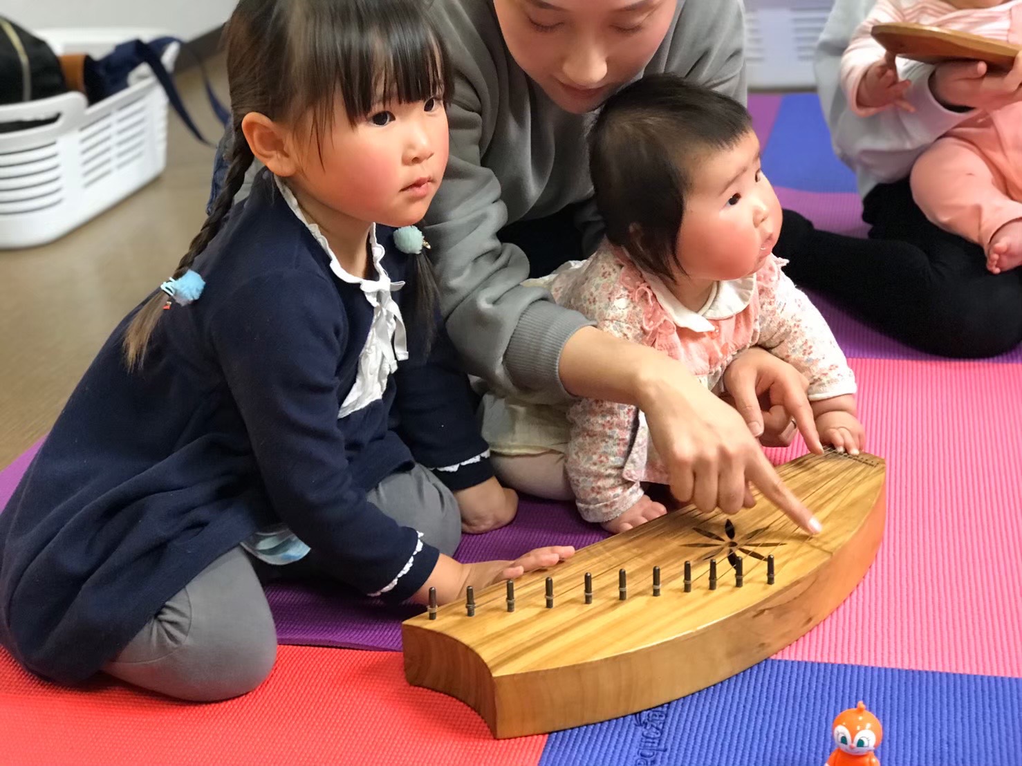 ライアーという楽器を演奏。ママのお腹のぬくもりを思い出すような音色です。